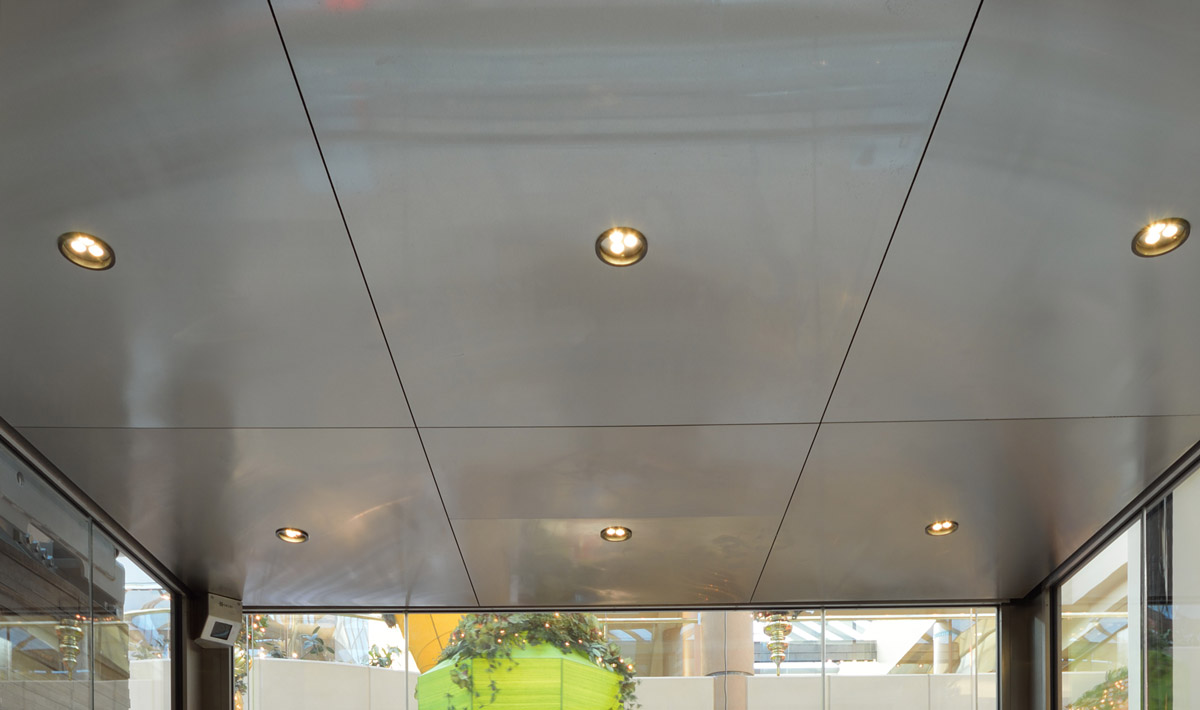 Working with KONE Inc., Eklund’s completed a custom glass observation elevator for Scottsdale Fashion Square. At the top, a six-panel ceiling is constructed of stainless steel #4 and contains six energy efficient LED downlights. The cab’s transparent side and rear walls are full length 9/16” thick, clear, low-iron laminated glass held in place at the top, bottom, and corners of the cab’s frame by extruded aluminum channels. Mounted through the glass walls, a sleek stainless steel handrail runs continuously along the rear and side walls of the cab, bending smoothly at the corner intersections.