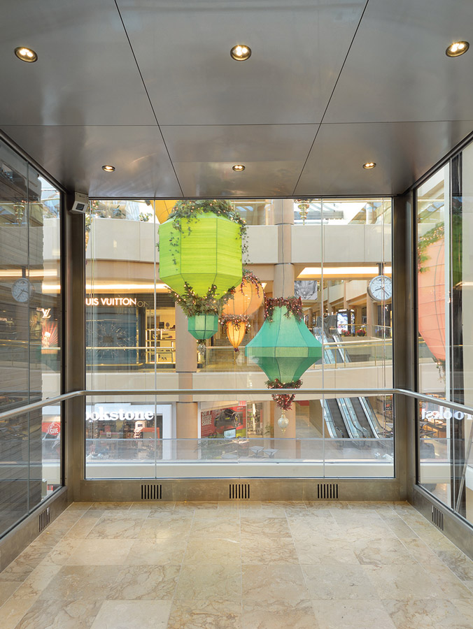 With approximately two million square feet of retail space, Scottsdale Fashion Square is the largest shopping destination in the Southwest and is among the top 30 largest malls in the country. The center is home to more than 225 retailers including Neiman Marcus, Nordstrom, Macy’s, and the largest Dillard’s in the country. Originally built as a 3-story open-air structure in 1961, Scottsdale Fashion Square has been through many expansions and modernizations throughout its lifetime. This past year, the mega-center opted to add a brand new glass elevator and hoistway at the mall’s epicenter in Palm Court to better accommodate mall patrons.